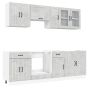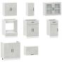 This 8-piece kitchen cabinet set, with its elegant design, optimises your kitchen space and provides ample storage space for your personal belongings! Stable and durable material: Engineered wood is a durable and stable material with a smooth surface that is resistant to moisture, warping, and splitting, making it a reliable choice for a variety of projects.Ample storage space: The kitchen cabinet set has many compartments, and offers sufficient space to store bowls, plates, pots, and other kitchen appliances.Adjustable feet: The bottom cabinets feature adjustable feet that can be adjusted in height to suit your kitchen layout.Easy to maintain: Thanks to its smooth surface, these kitchen cabinets are easy to clean with a damp cloth and require less maintenance. Warning:To prevent it from tipping over, this product must be used with the provided wall attachment device. Good to know:Screw(s) and plug(s) for inside the wall are not included. Seek and use screw(s) and plug(s) suitable for your walls. If you are uncertain, seek professional advice. Read and follow each step of the instruction carefully.The worktop, sink and faucet are not included in the delivery.