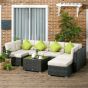 Make your garden stand out like never before. Say hello to this garden corner sofa set. Each piece has a steel frame for strong support, wrapped in plastic wicker for double the durability; also creating a forever-stylish set for your outdoor space. Comes with two corner seats, four normal seats, a footstool and table - set up into a shape which you want. Padded cushions for comfort, with four coloured cushions for a touch of bold beauty.