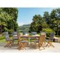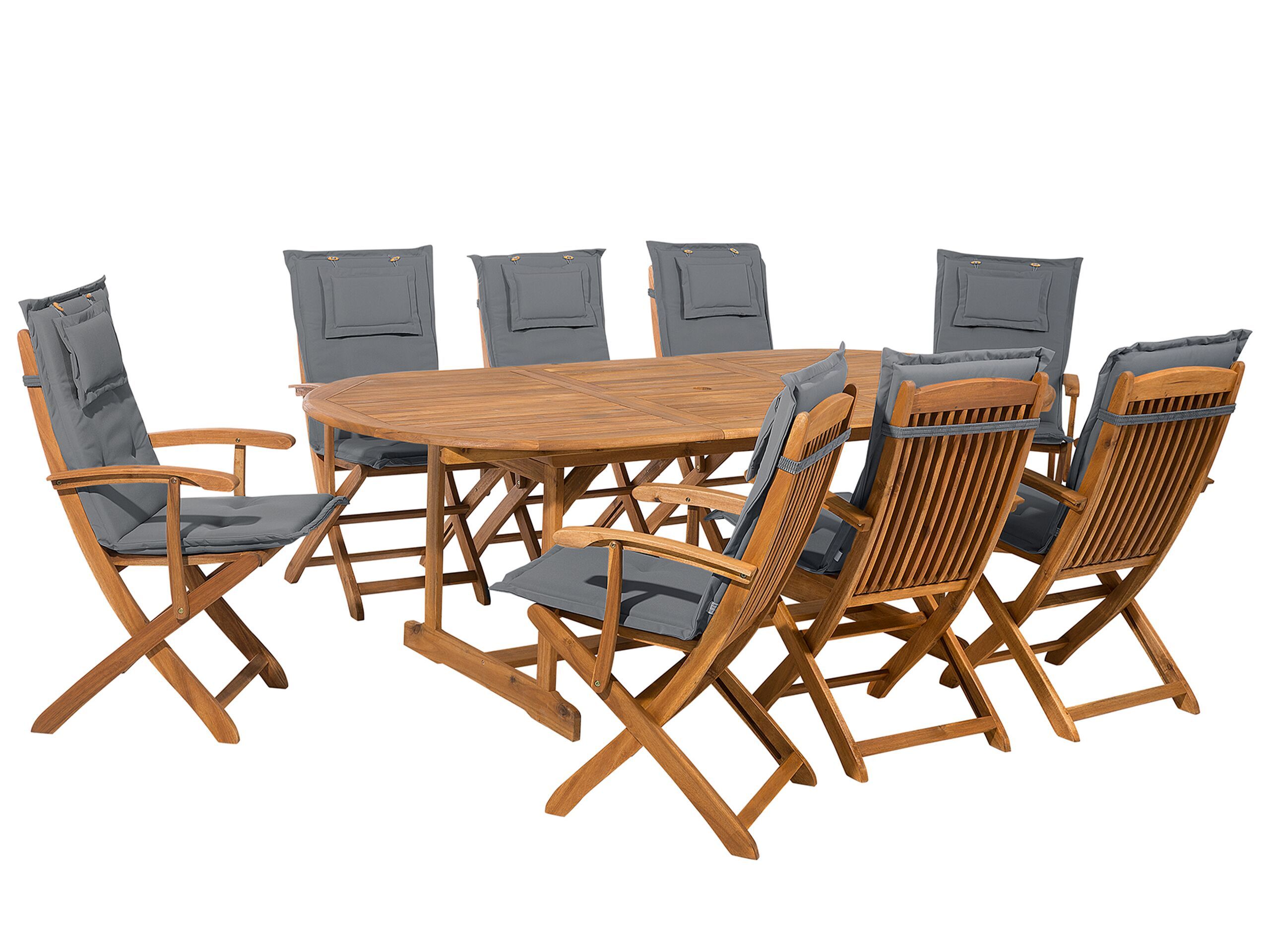 8 Seater Acacia Wood Garden Dining Set Grey Cushions MAUI