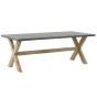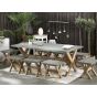 Elevate the look of your garden with this dining set, consisting of a dining table and 8 stools. All pieces are made of durable, weather resistant elements. The table top and seats are crafted out of fibre cement, which is easy to take care of, while bases of the furniture are made of solid acacia wood, that underlines minimalist, modern look of the set. The eye-catching colour combination makes the furniture stand out and upgrade any area and decor style. Details: Color: Grey, Light Wood. Main material: Fibre Cement. Additional material: Acacia Wood. Weight: 164 Capacity: 8 People Assembly: Full Assembly Required Wood type: Acacia mangium Wood Origin: Vietnam Overall Dimensions: 200x100x75 Table Dimensions: 200x100x75 Chair Dimensions: 40x51x45 Seat Height: 41