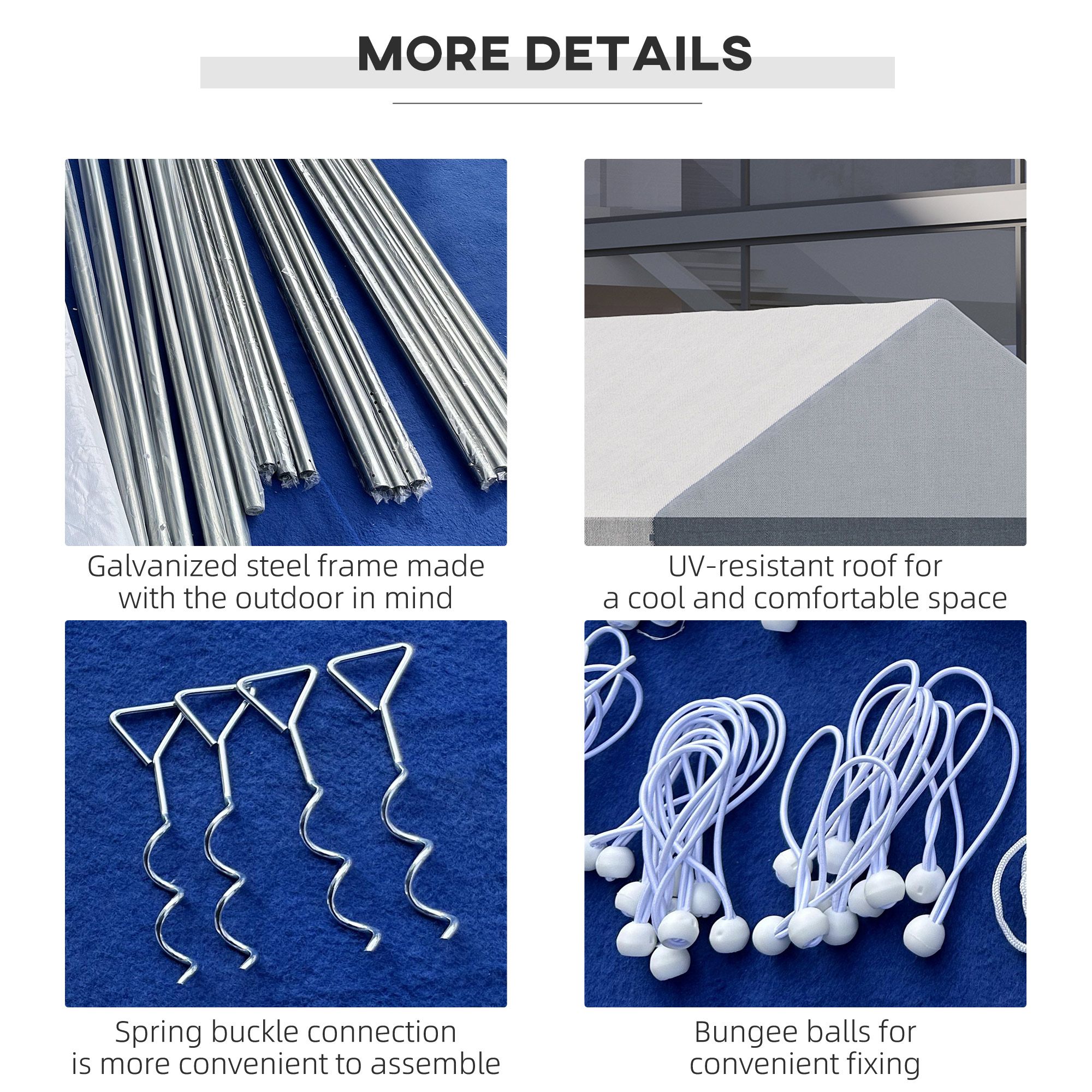 - Stable standing: With galvanised for added durability, it stands up in place and won't collapse on your furniture and guests. Various ground stakes and guy ropes were included providing additional support.