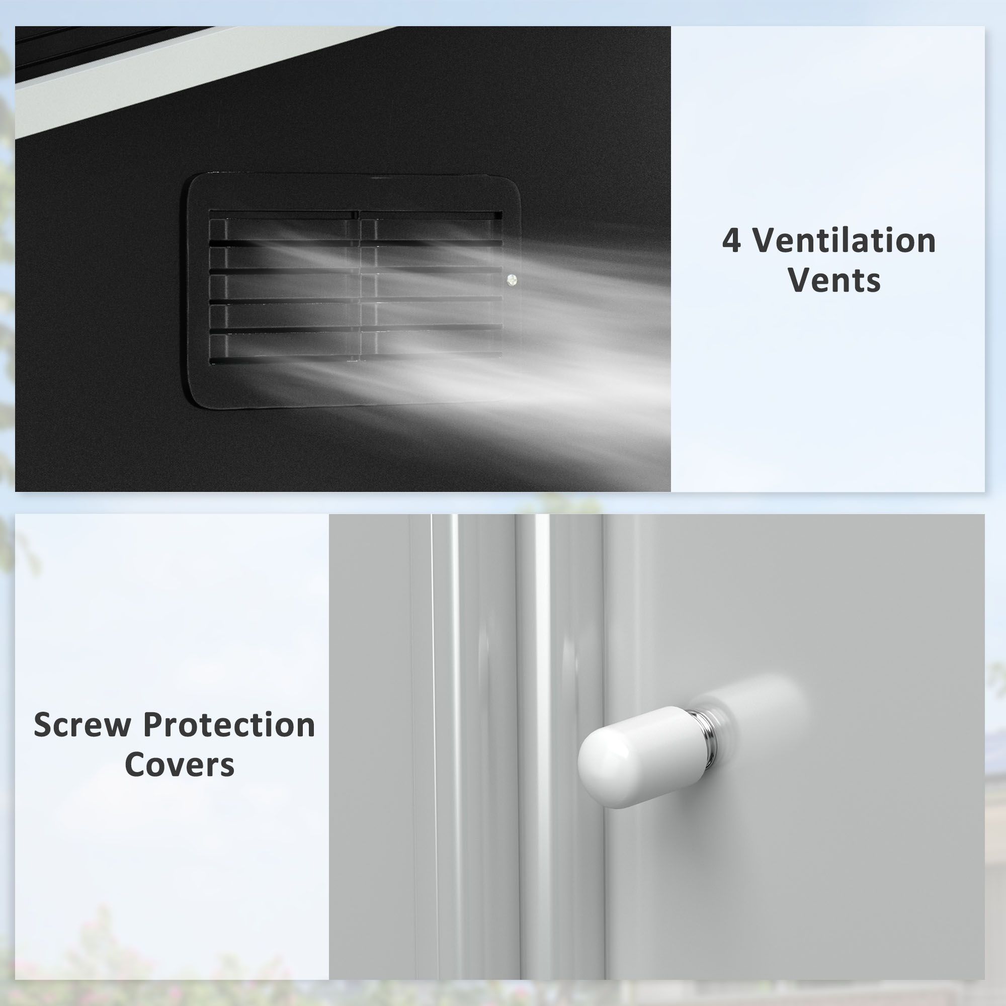 This tool shed is the top place to keep your tools, garden equipment and outerwear stored and protected. The galvanised shed is made of galvanized steel which is durable and resistant to corrosion for longevity. The sloping roof of the outdoor shed prevents rain water from accumulating to prevent damage and decay this mobility scooter shed. This metal garden shed has double sliding door, which ensures easy access and the four ventilation slots keep pent shed inside fresh and aerated.