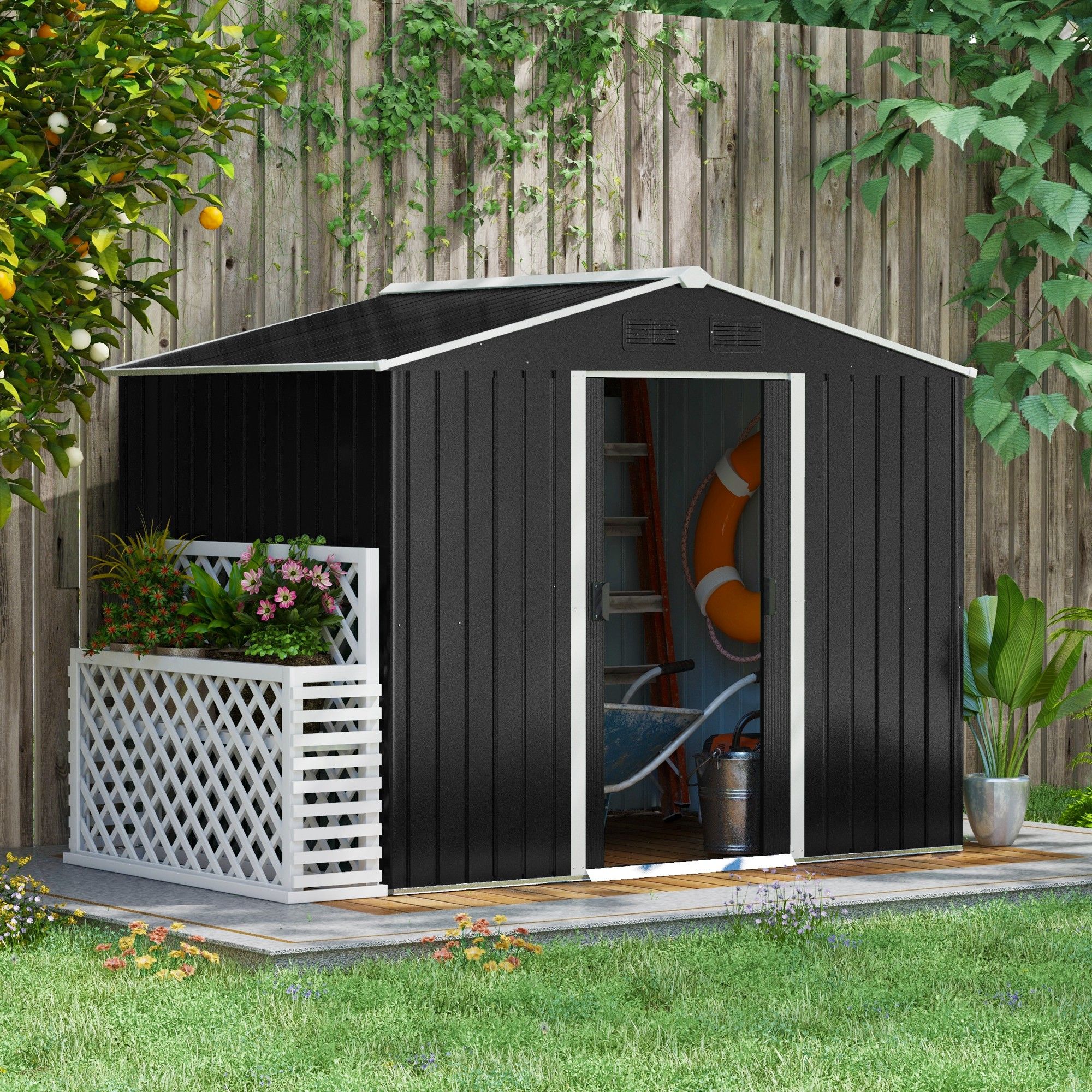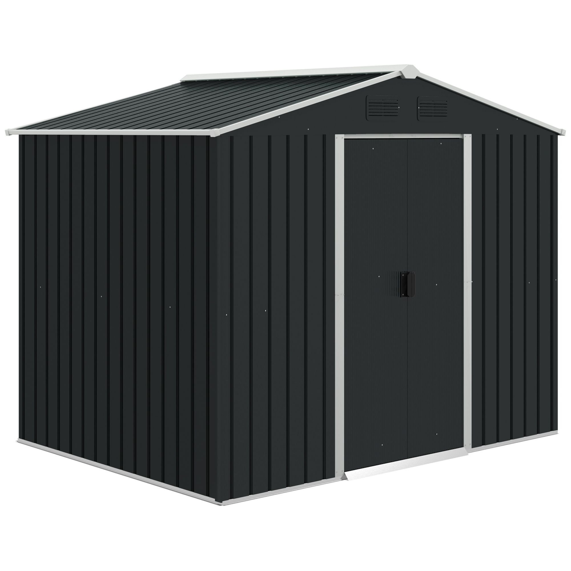 8 x 6ft Garden Storage Shed Double Door Ventilation Windows Sloped Roof Outdoor Equipment Tool, Grey