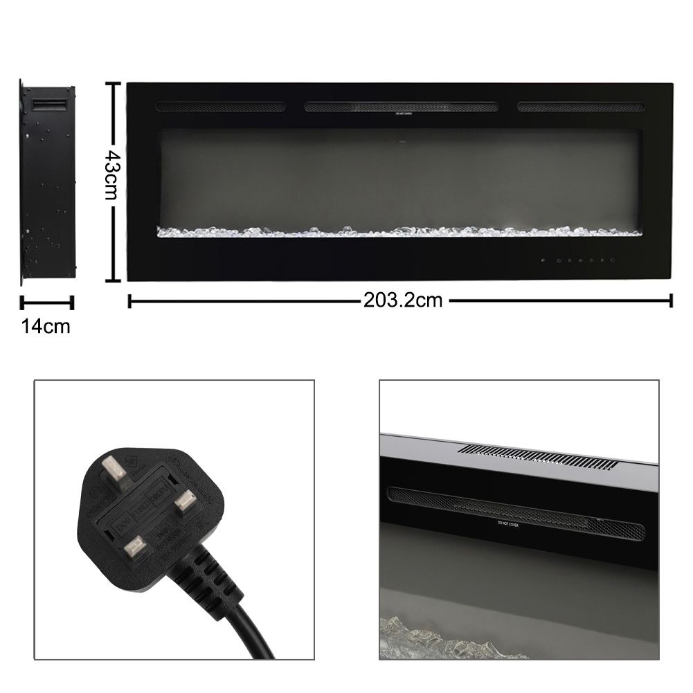 80 Inch Inset Electric Fireplace Built-In Heater With 9 Flame Colour