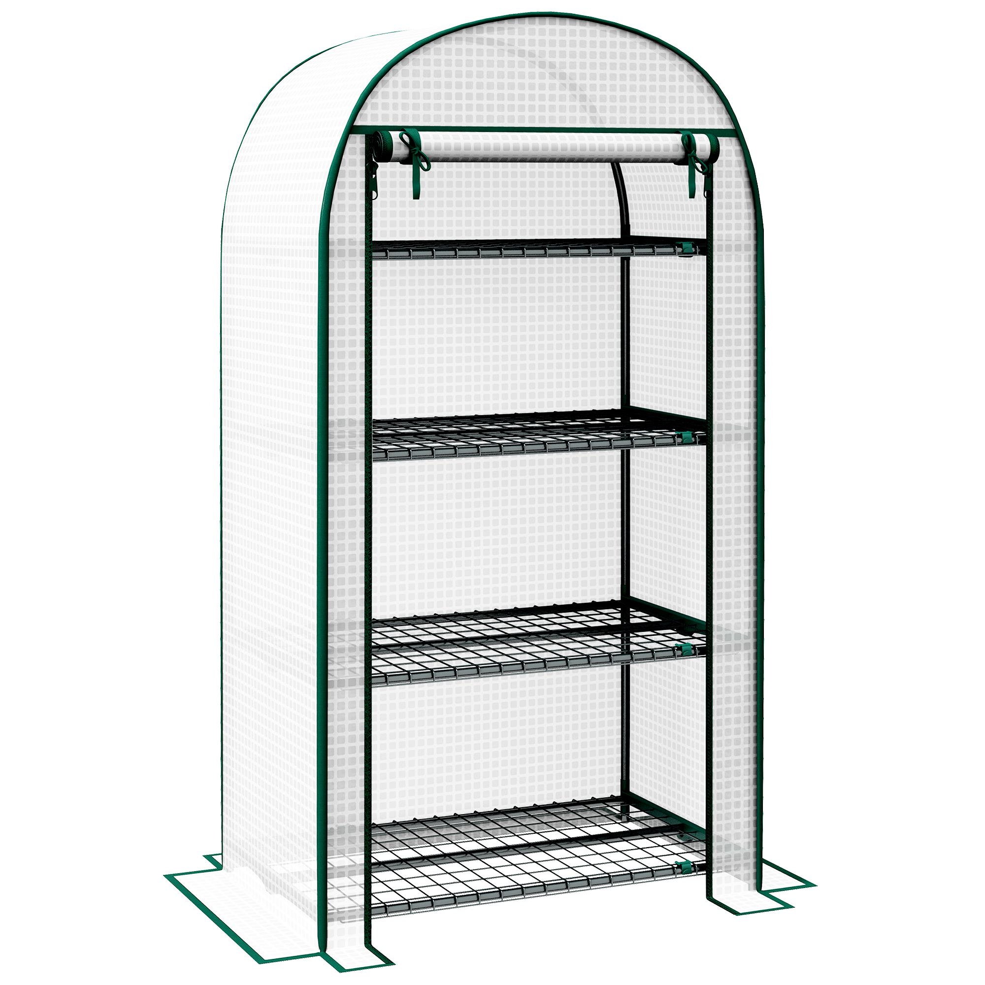 80 x 49 x 160cm Mini Greenhouse for Outdoor, Portable Gardening Plant Green House with Storage Shelf, Roll-Up Zippered Door, Metal Frame and PE Cover, White
