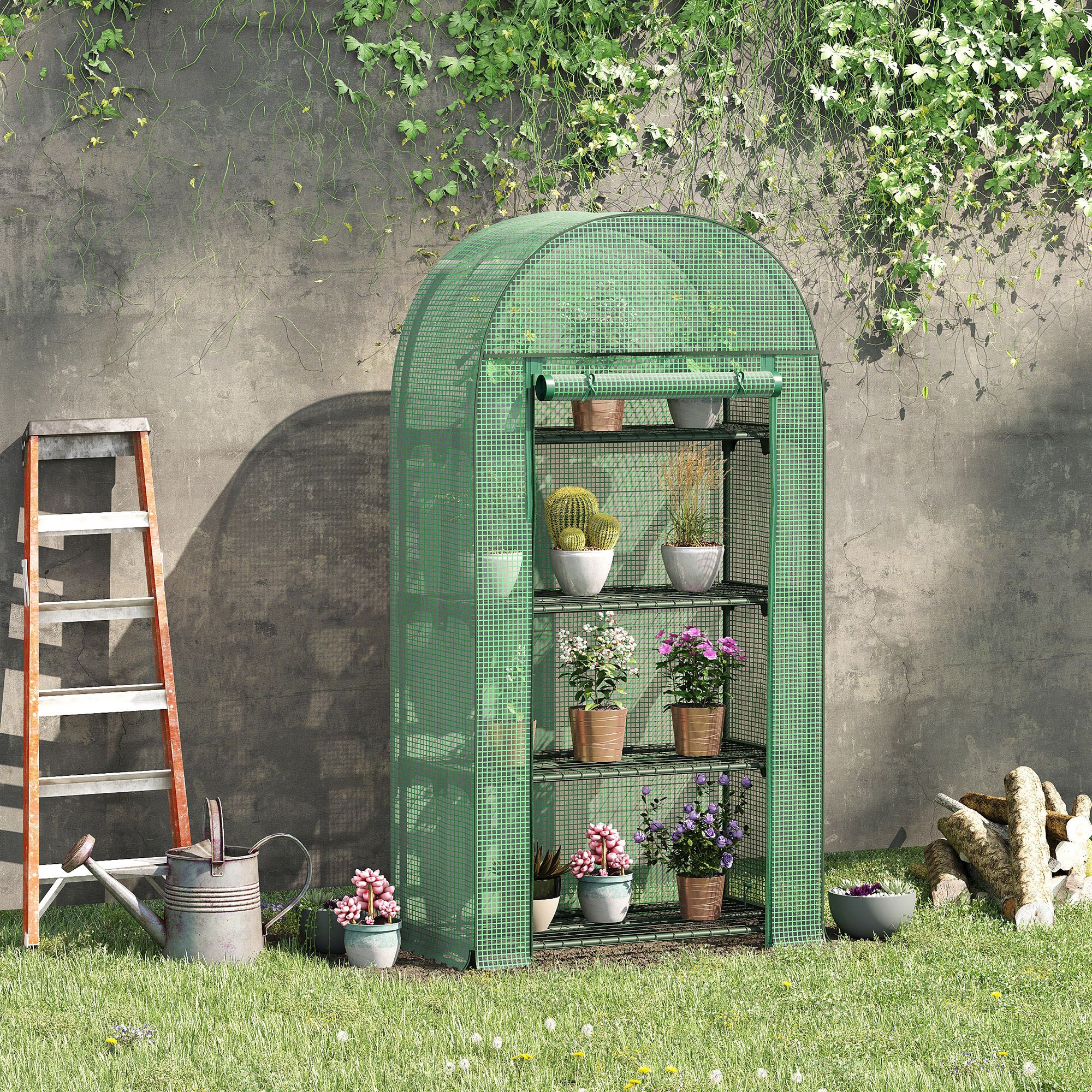 80x49x160cm Mini Greenhouse for Outdoor, Portable Gardening Plant with Storage Shelf, Roll-Up Zippered Door, Metal Frame and PE Cover, Green