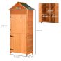 This shed comes in a tall, slightly narrow design: a great storage piece for small garden and outdoor spaces. Inside, on the left, there are three shelves for easy organisation, with an open right side which caters for large and long pieces. Made from fir wood for a durable outdoor structure, it's fitted with a sloped roof, so no water build-up. Ashapt covering on the roof to help prevent water entering inside. Complete with a latch on the two doors for security.