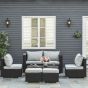 This eight-piece rattan set using galvanised steel for the frame to ensure a strong and tough structure, each of the two single chairs, two corner chairs, two stools and two coffee tables are covered with PE wicker for long-tern use outdoors, with pieces but the table featuring heavily padded cushions for you to lounge comfortably. A fantastic blend of style, comfort and craftsmanship.