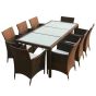 9 Piece Outdoor Dining Set with Cushions Poly Rattan Brown