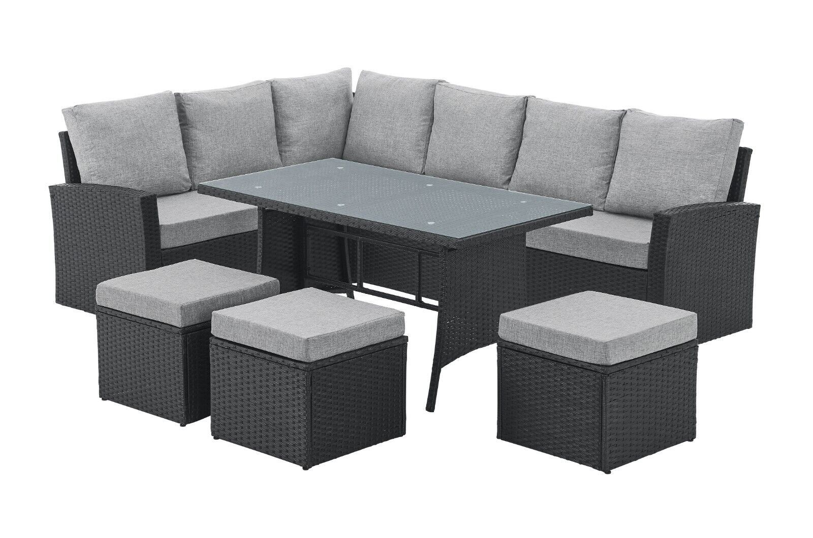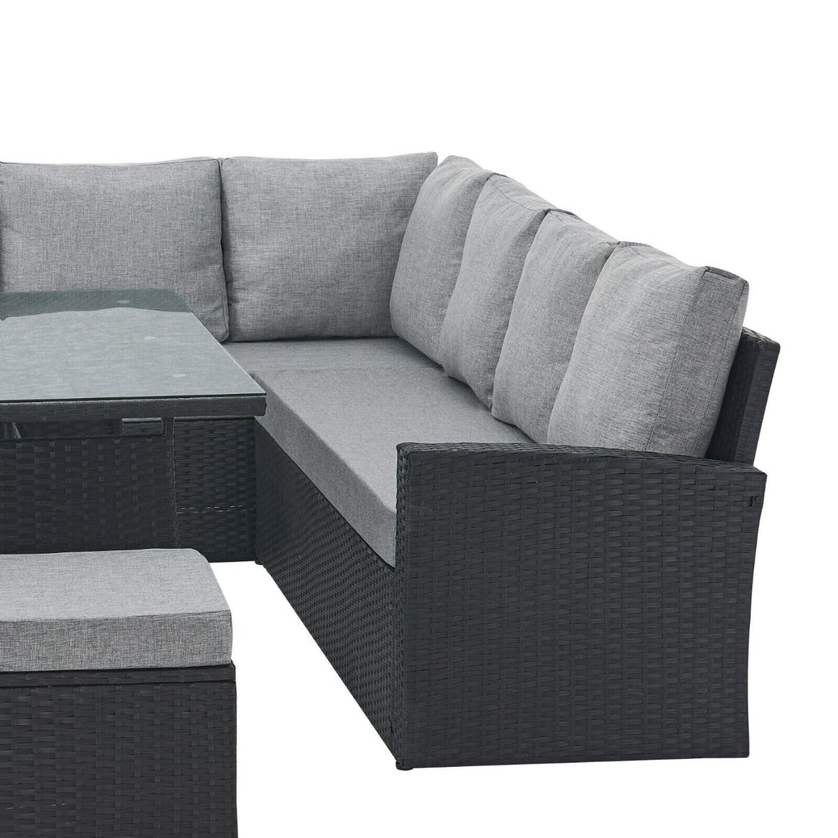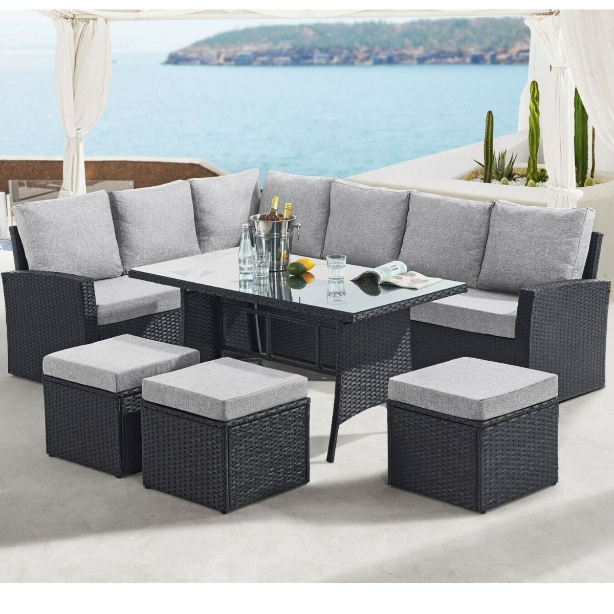 9 Seat Marylin Corner Rattan Dining Sofa Garden Set - Black
