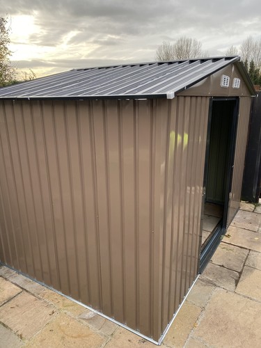 9 x 6FT Garden Metal Storage Shed Outdoor Storage Shed with Foundation Ventilation & Doors, Brown