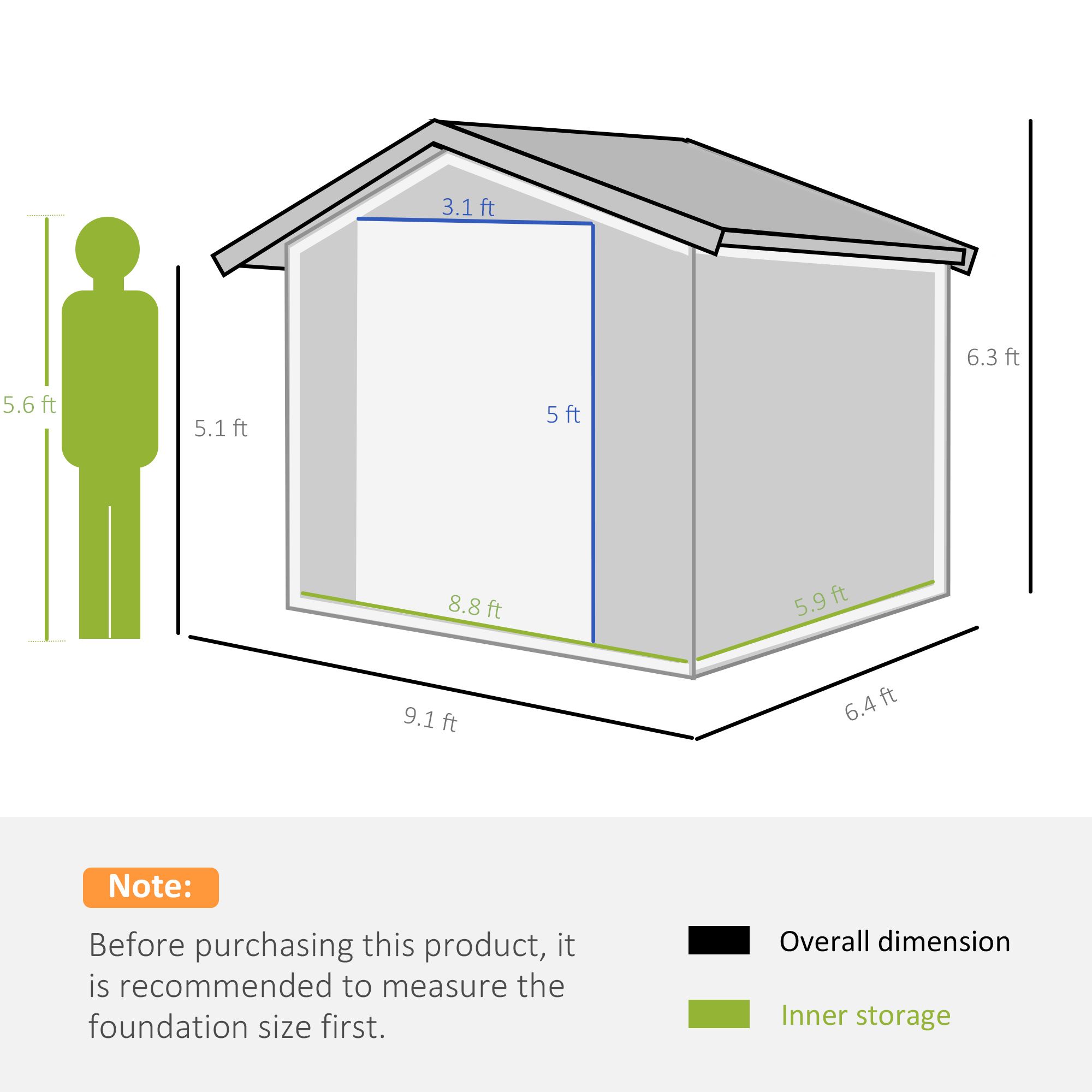 - Floor foundation included, with all parts pre-cut and pre-drilled