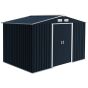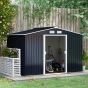 9 x 6FT Outdoor Garden Roofed Metal Storage Shed Tool Box with Foundation Ventilation & Doors, Dark Grey