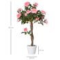 90cm/3FT Artificial Rose Tree Fake Decorative Plant w/ 21 Flowers Pot Indoor Outdoor Faux Decoration Home Office Décor Pink & Green