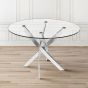 Introducing the epitome of contemporary elegance: the coffee table. With four sleek chrome legs intertwining in a mesmerizing cluster, it elevates any space into a realm of sophistication. Crafted with tempered glass, it withstands the heat of culinary delights. Perfect for intimate gatherings, it's a fusion of style and practicality, catering to modern living in compact luxury.