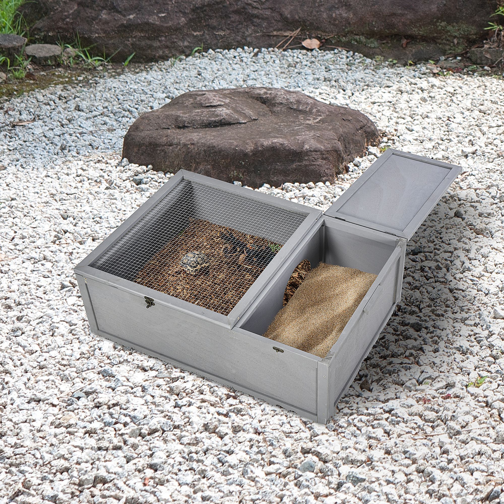 94 cm Wooden Tortoise House Turtle Habitat Small Reptile Cage Enclosure with Two Room Grey