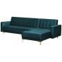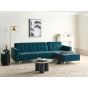 ABERVON Velvet 4 Seater L Shaped Corner Sofa Bed - Teal, Left Hand Facing