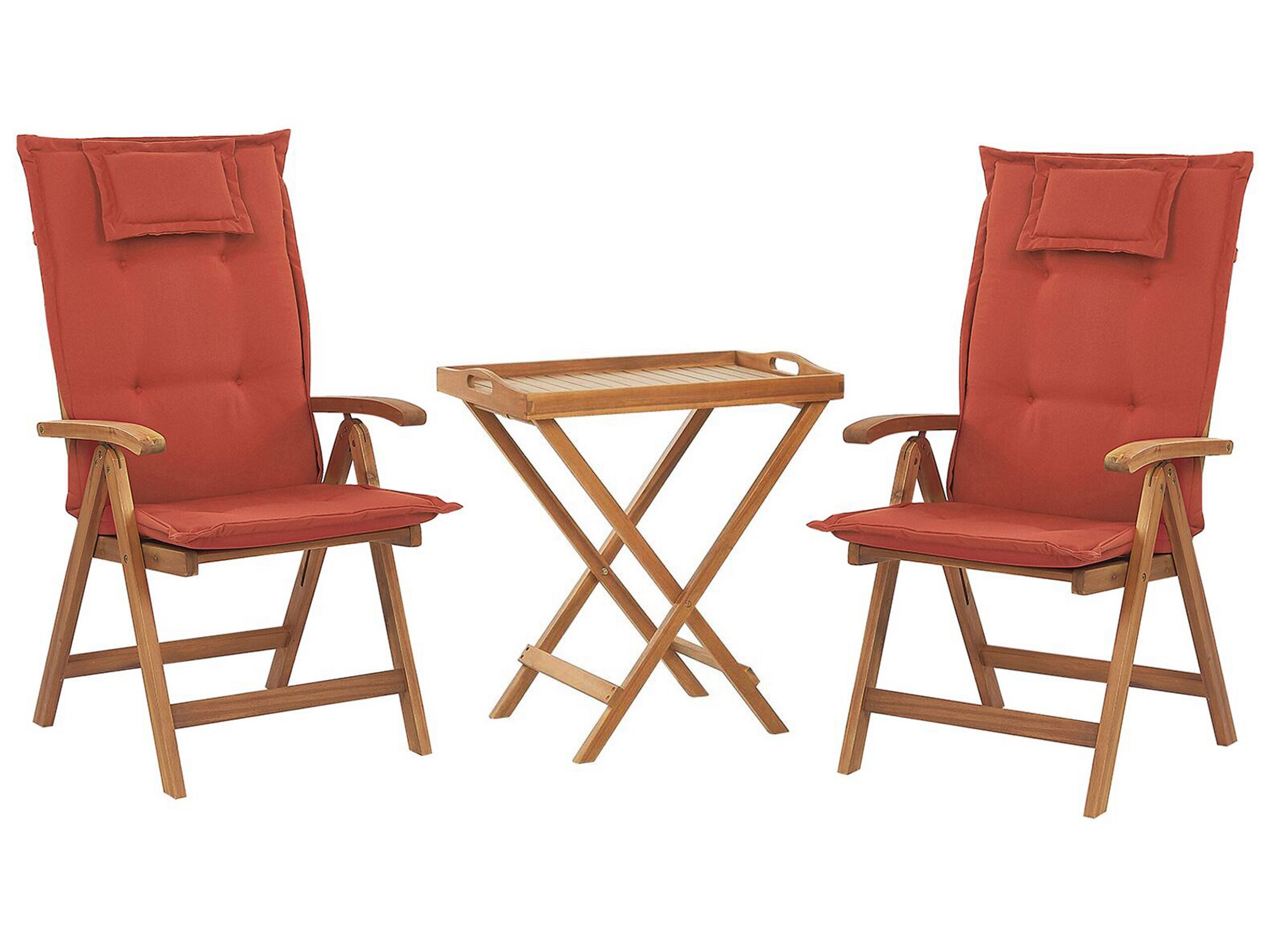 Acacia Wood Bistro Set with Red Cushions JAVA