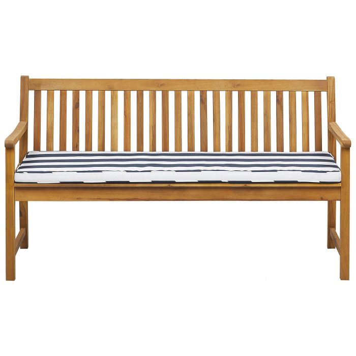 Acacia Wood Garden Bench 160 cm with Blue Stripes Cushion VIVARA