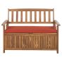 Acacia Wood Garden Bench with Storage 120 cm Light with Red Cushion SOVANA