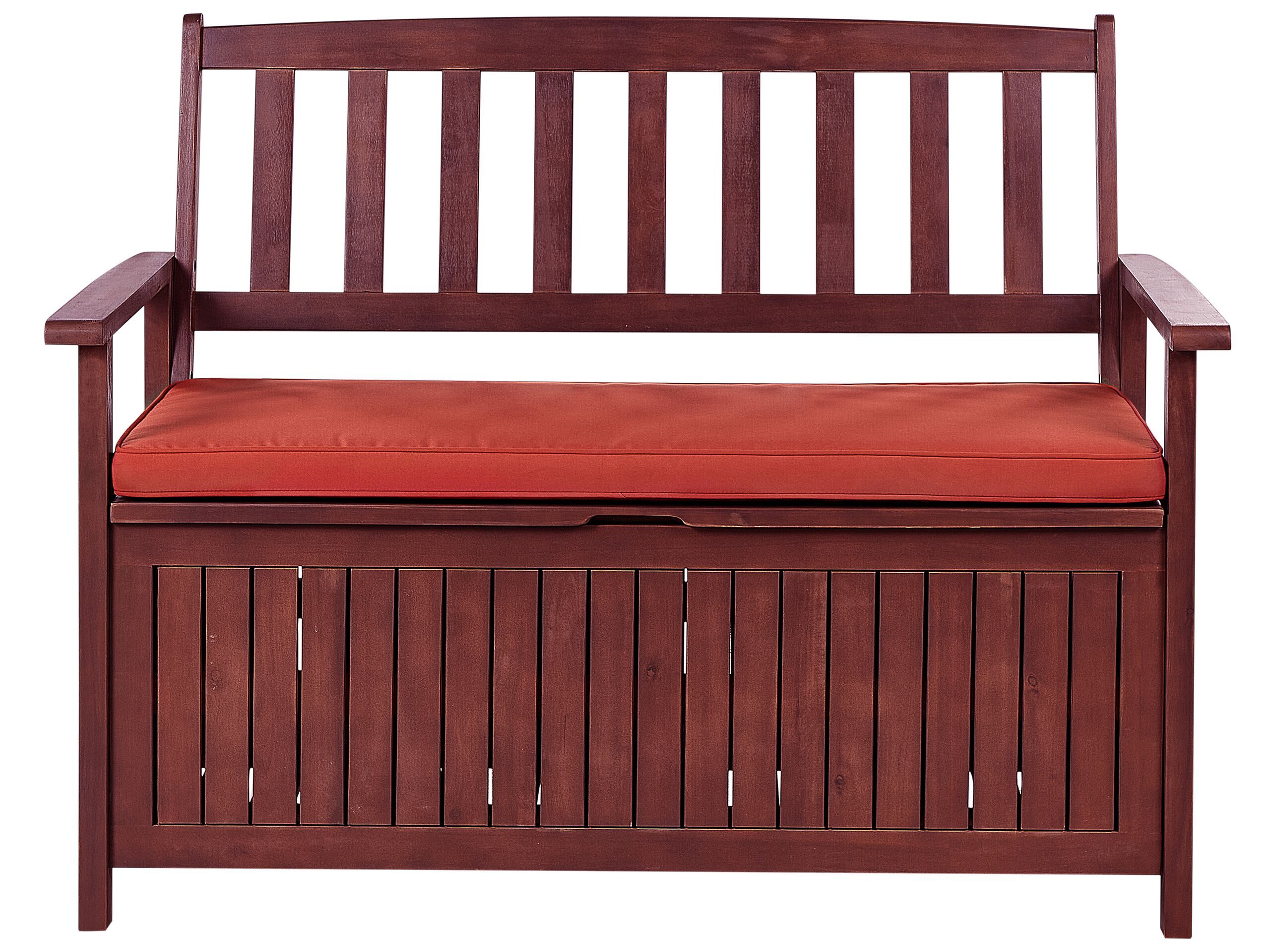 Acacia Wood Garden Bench with Storage 120 cm Mahogany Brown with Red Cushion SOVANA