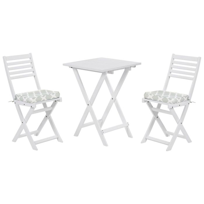 Acacia Wood Garden Bistro Set with Mint Green Cushions White FIJI