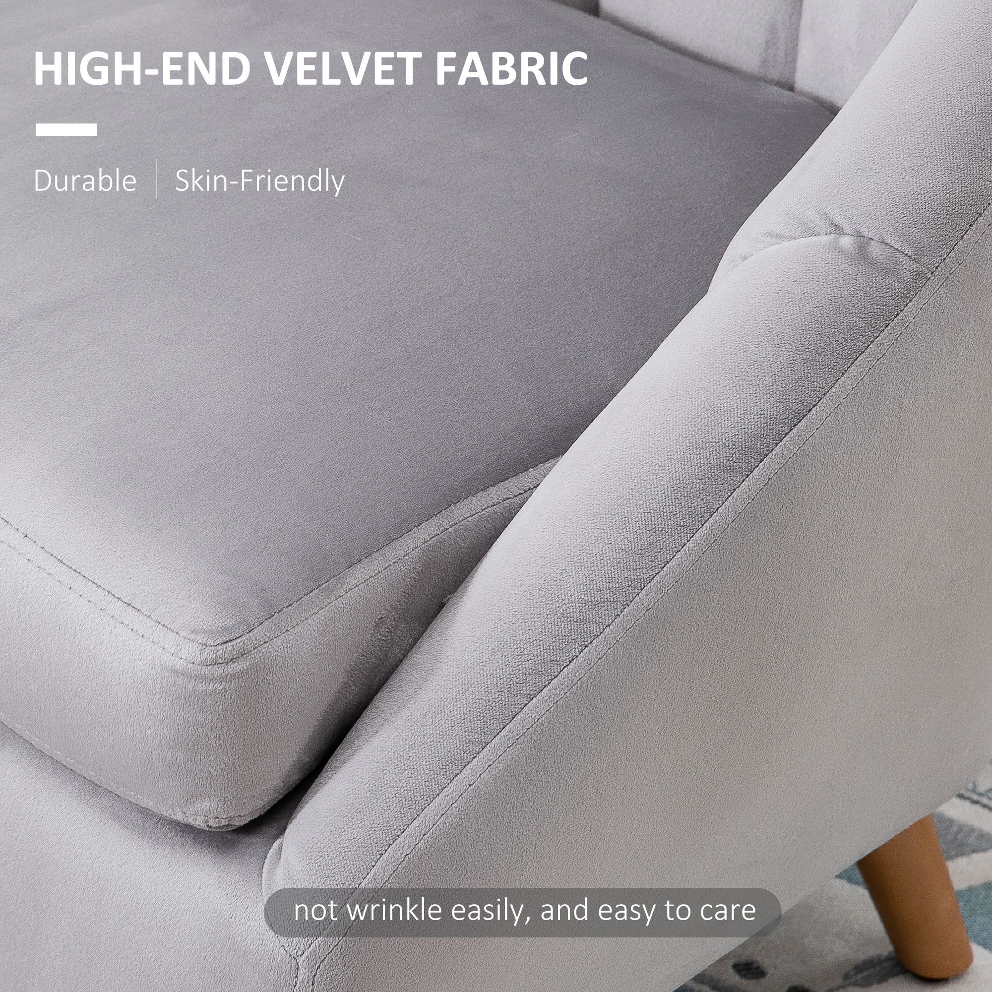 Accent Chair Velvet Fabric Single Sofa Armchair Home Living Room Solid Wood Leg Upholstered Side Armchair Grey