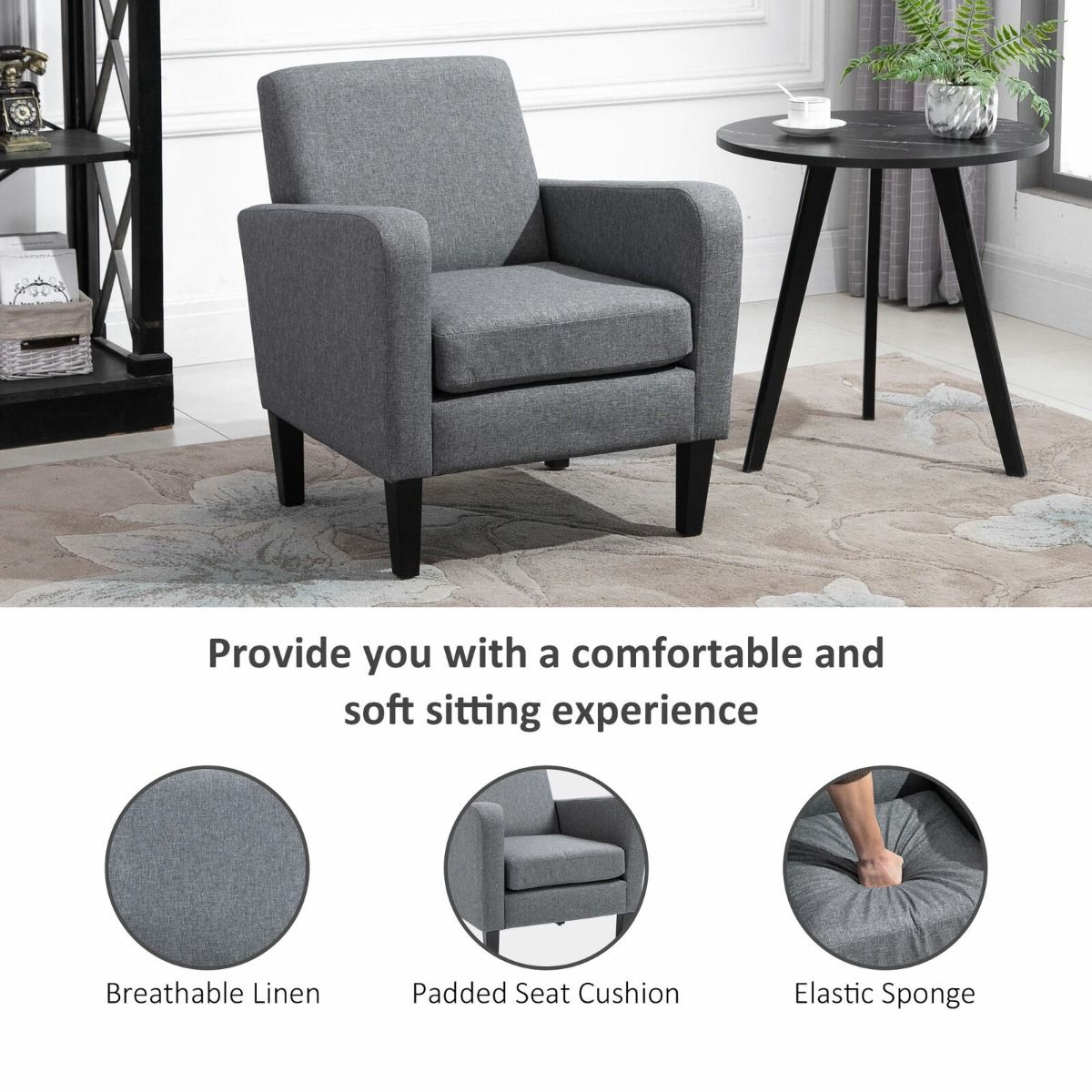 - Material: Linen,Rubber Wood,Sponge