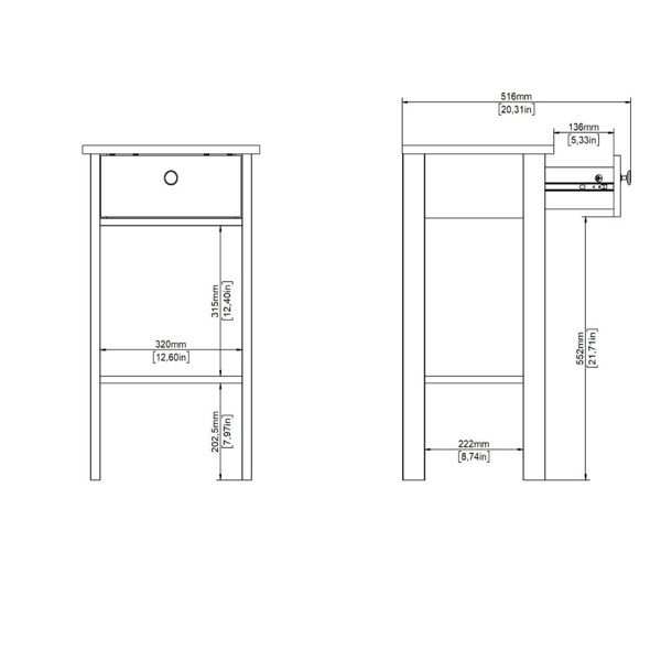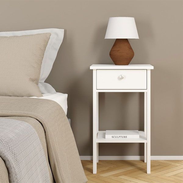 Bedside Table - ADELAIDE Nightstand White 40cm