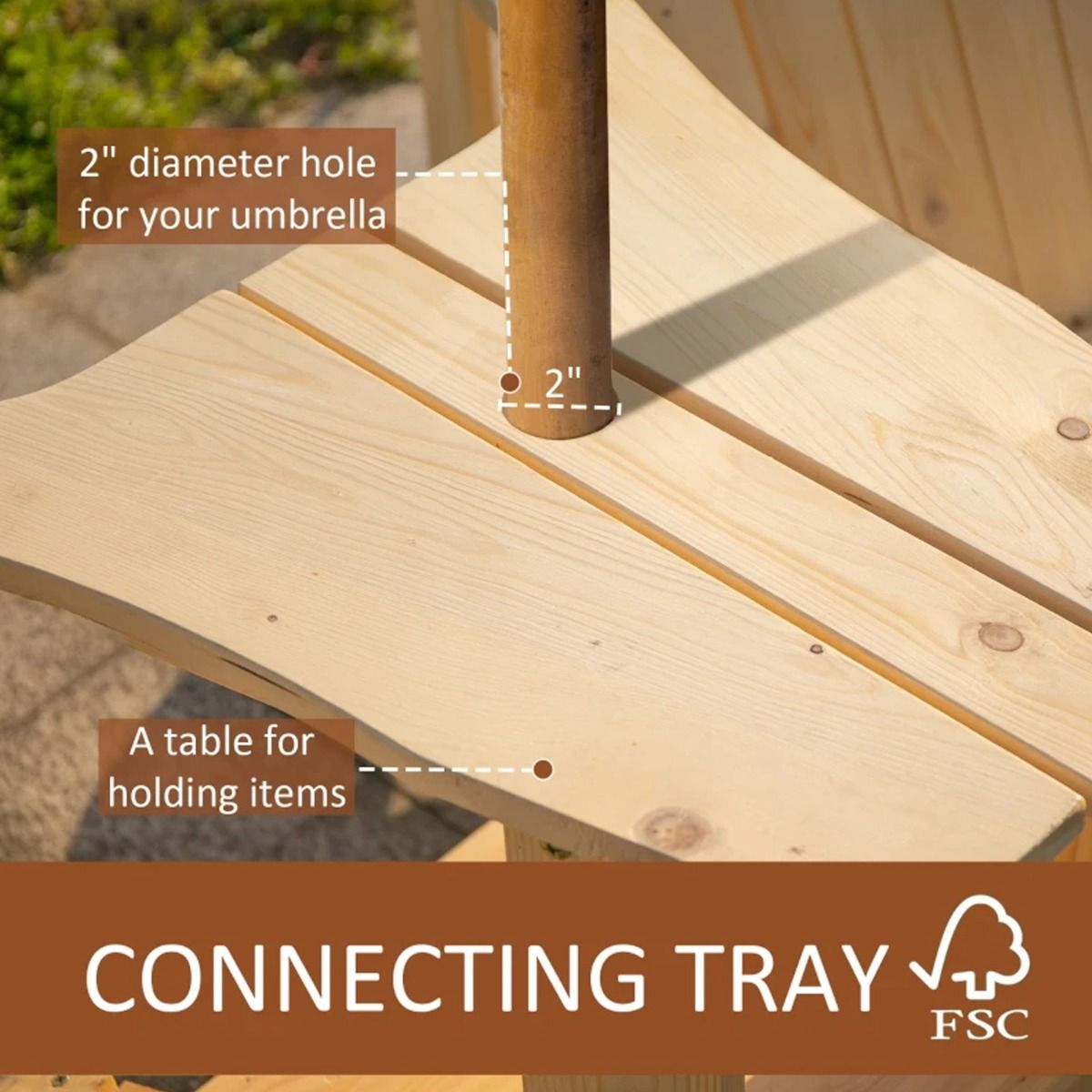 Adirondack Outdoor Loveseat Chairs Set of 3 with Center Table and Umbrella Hole - Natural