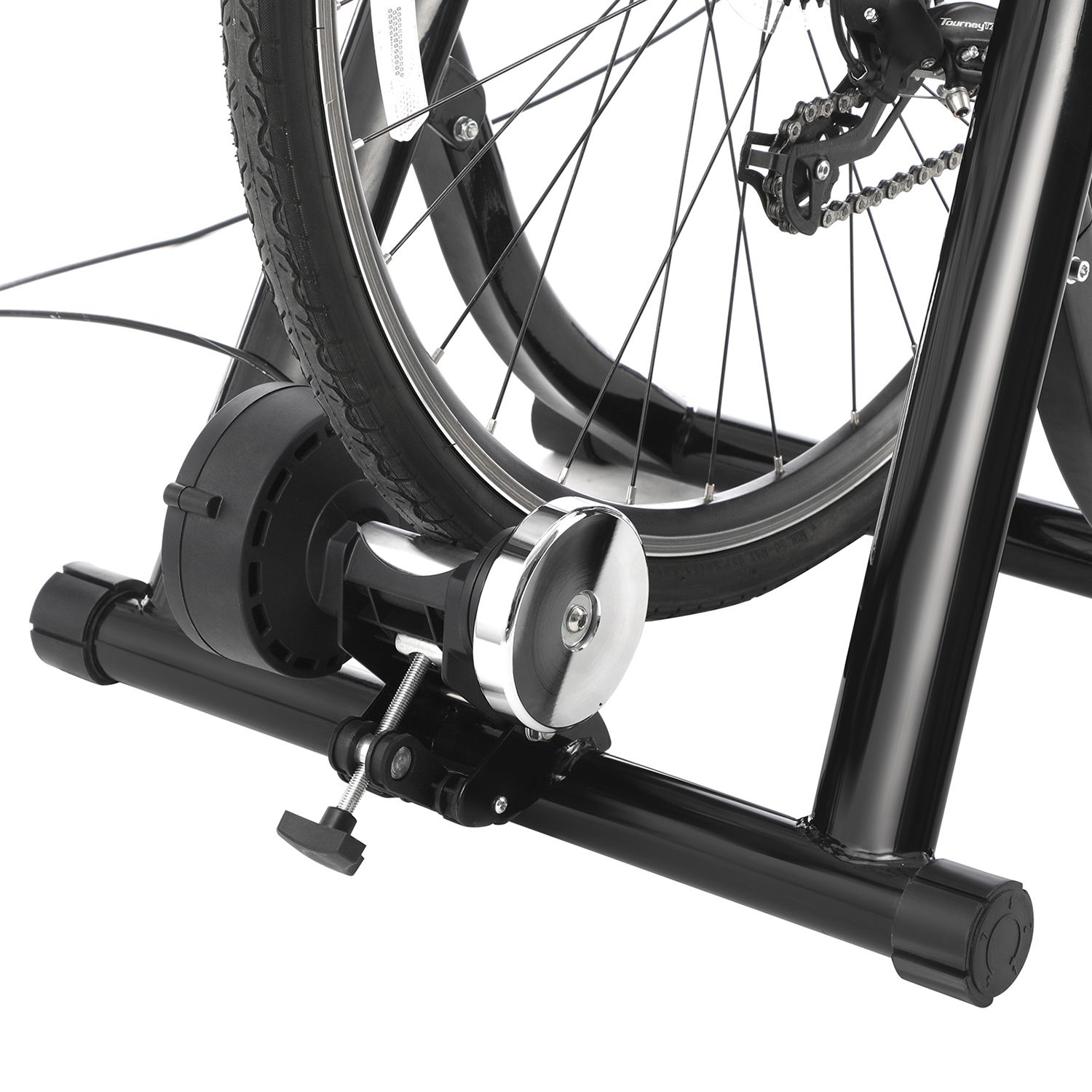 Package Contents:1 x Indoor Bike Trainer Stand1 x Front Wheel Riser1 x Adjustable Resistance Shifter1 x Quick-Release Skewer1 x Instructions (EN, DE, FR, ES, IT)