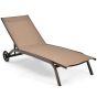 Adjustable Chaise Lounge with Smooth Wheels and Quick-drying Fabric-Coffee