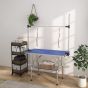 Adjustable Dog Grooming Table Rubber Top 2 Safety Slings Mesh Storage Basket Heavy Metal Blue 107 x 60 x 170cm