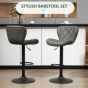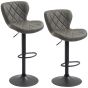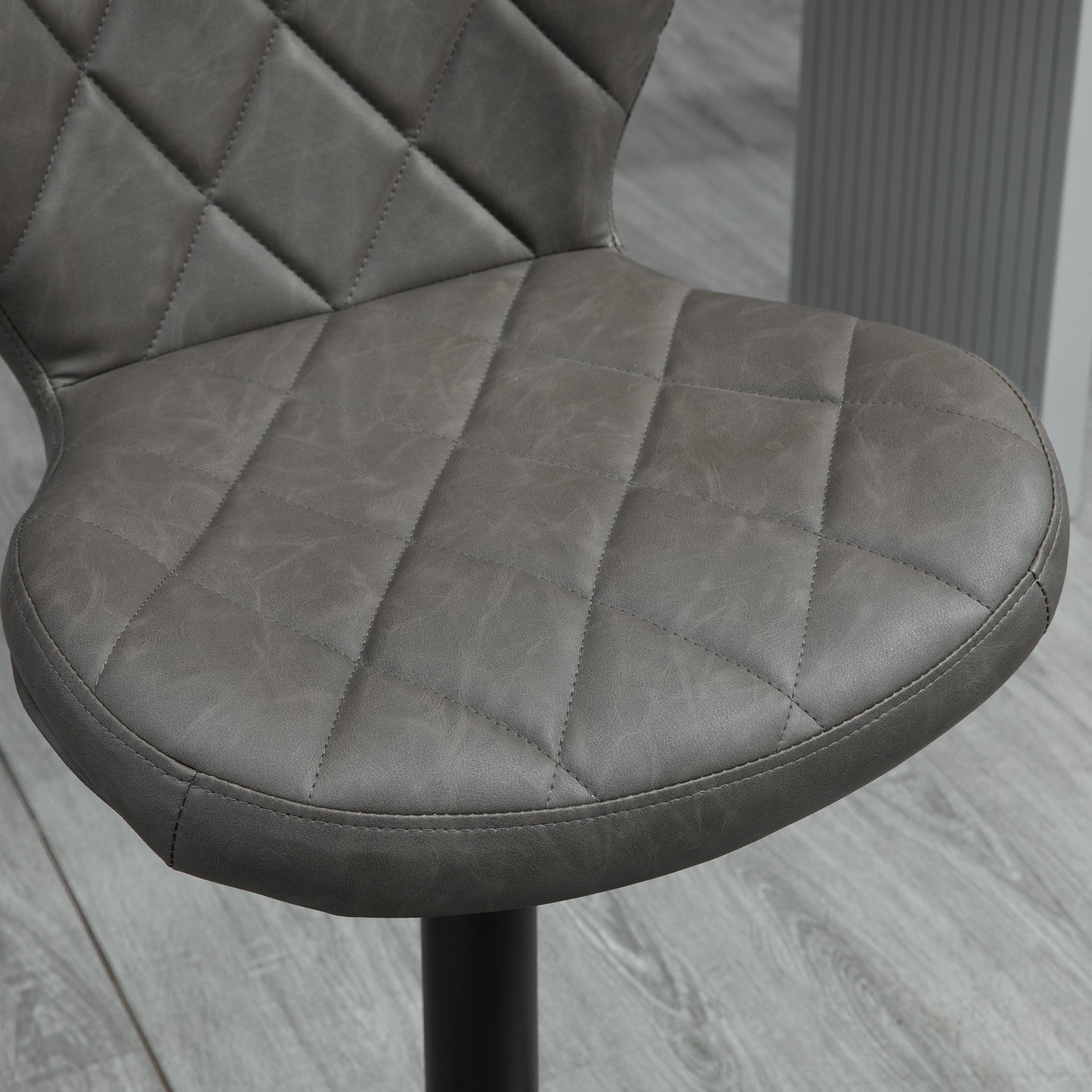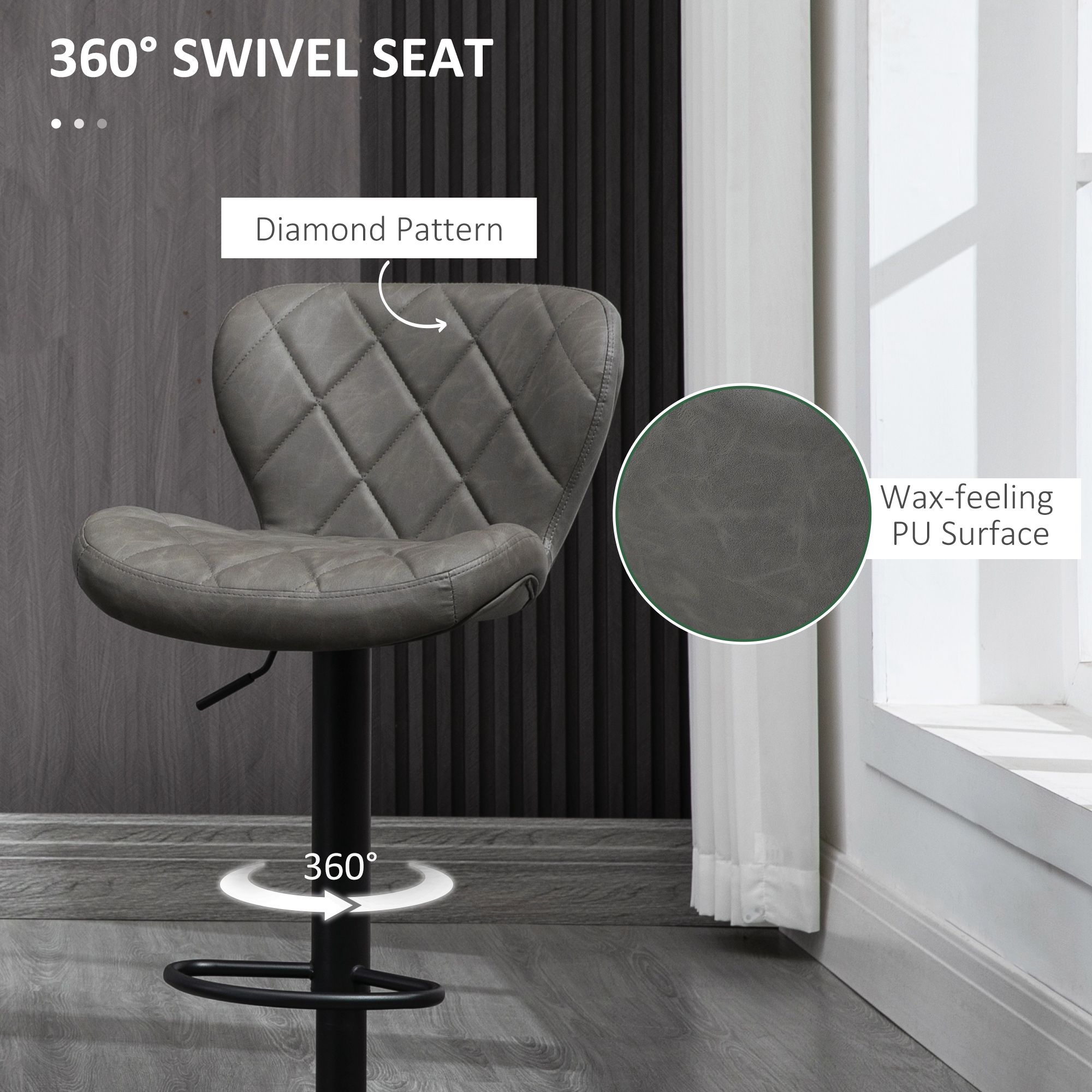 Adjustable Height Bar Stools Set of 2, Swivel Barstools with Backrest and Footrest, Steel Frame Diamond Pattern PU, Kitchen Dining, Dark Grey