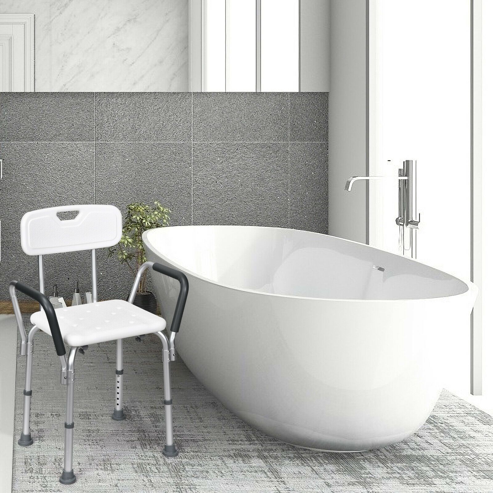 Adjustable Height Bath / Shower Chair with Removable Back and Armrests