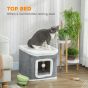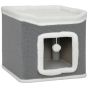 AESMARIS Cat House for Indoor Kittens 2-Level Cat Cave Bed with Fluffy Balls - Grey
