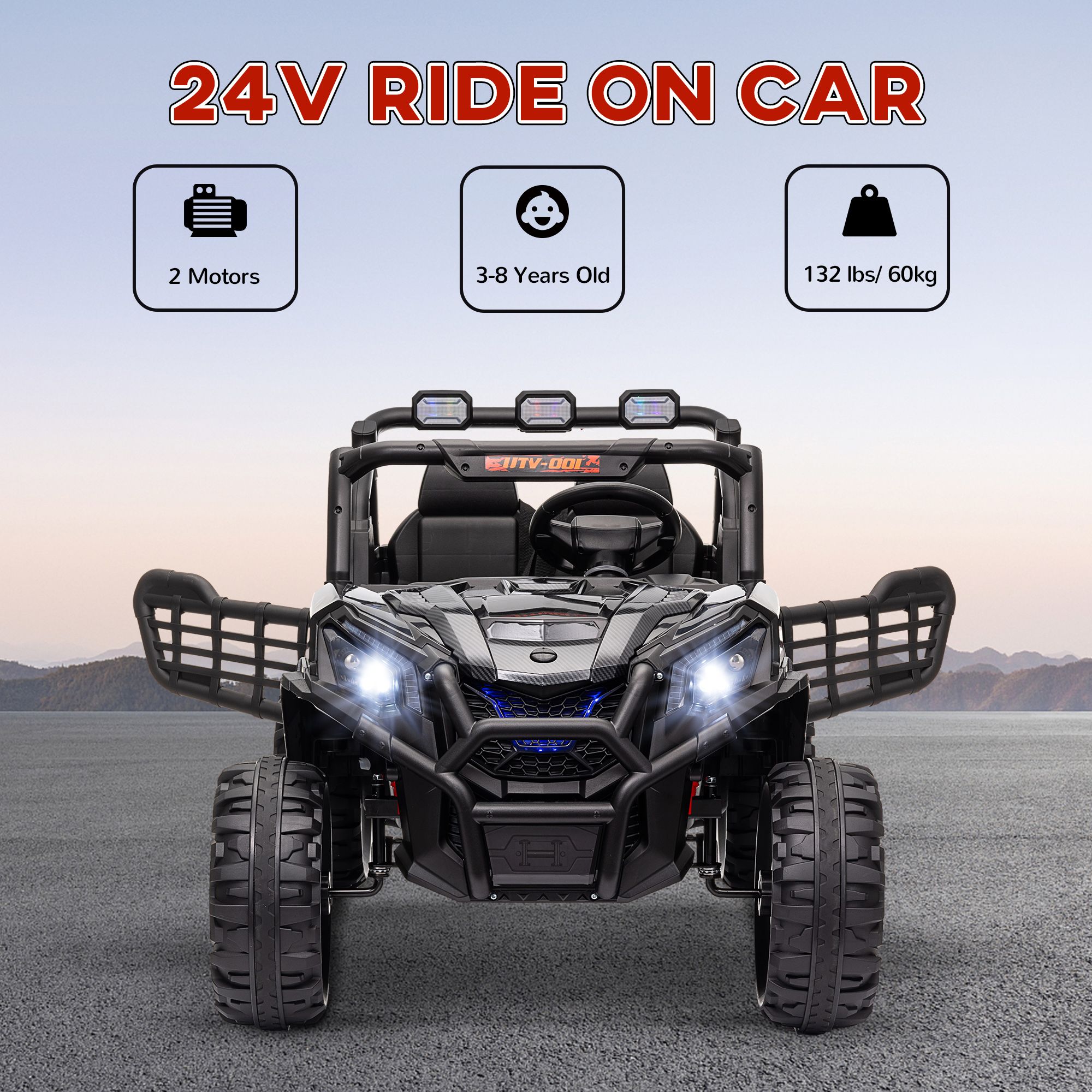 AIVAGO 24V 2 Seater Kids Electric Car with Remote Control, Suspension System, Slow Start, 3 Speeds, for 3-8 Years, Black