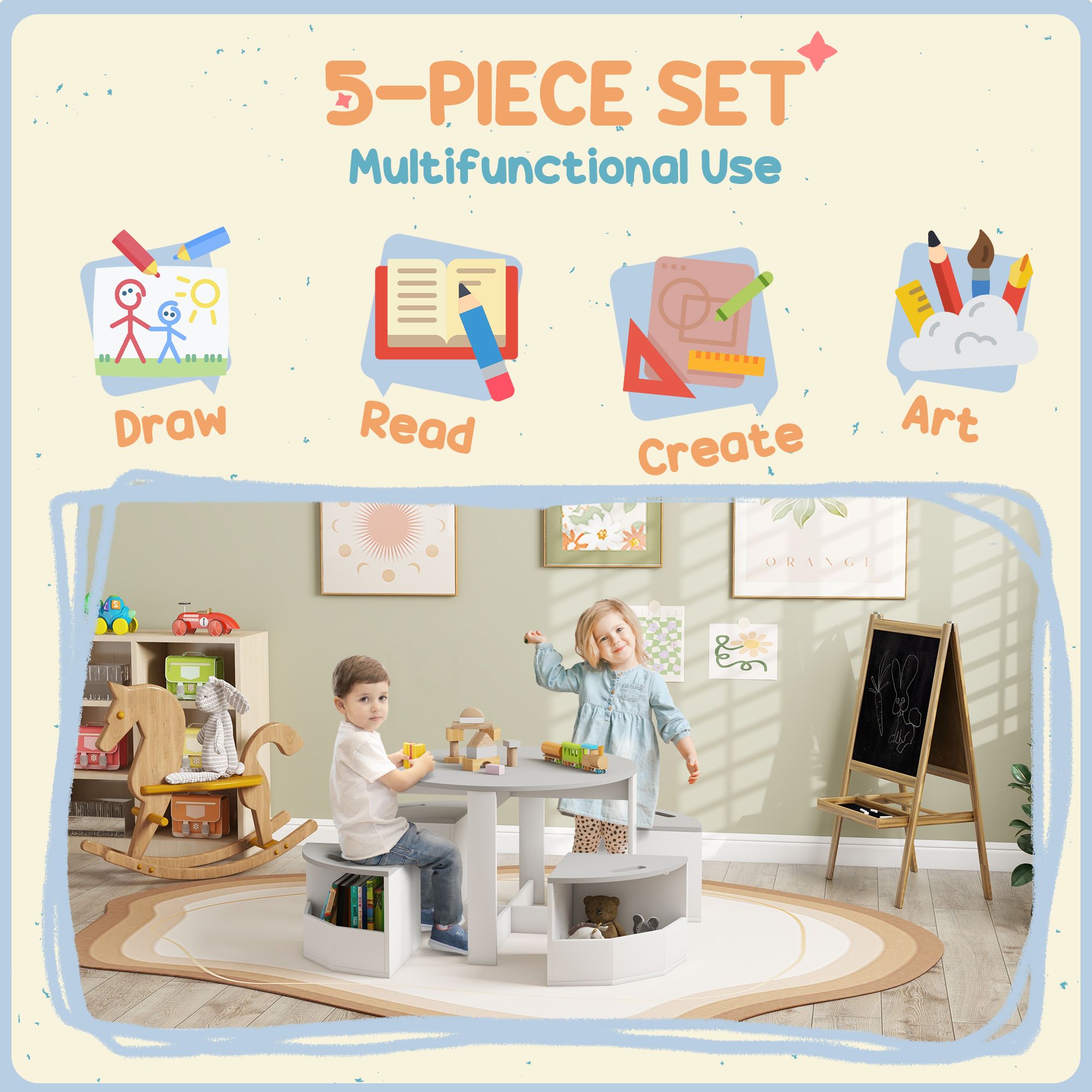 AIVAGO 5-Piece Kids Table and Chairs Set with Storage for Toddler 3-8 Years Old, Grey