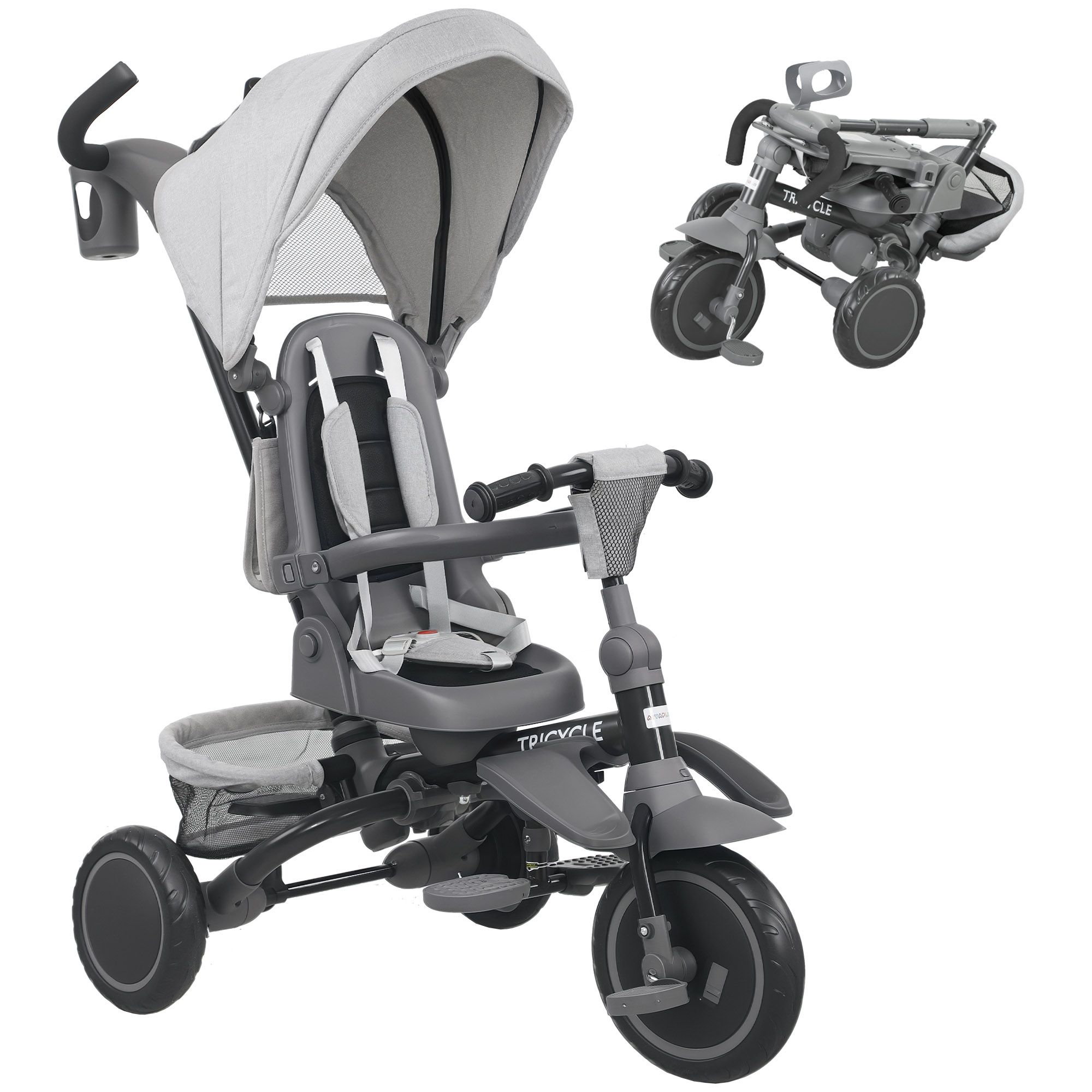 AIVAGO 6-in-1 Foldable Kids Trike with Parent Handle & Canopy, Ages 1-5 - Grey