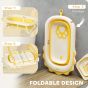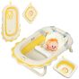 AIVAGO Foldable Baby Bath Tub Set with Bath Cushion, Wash Basin, Non-Slip Stand, Bottom, Yellow