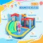AIVAGO Inflatable Bouncy Castle with 550W Blower, Basketball Hoop, Long Slide, Dart Board, Carrying Bag, 385 x 290 x 180 cm