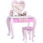 AIVAGO Kids Dressing Table Set, Vanity Table with Stool, Mirror, Drawer, Desktop Storage, Heart Theme, Pink