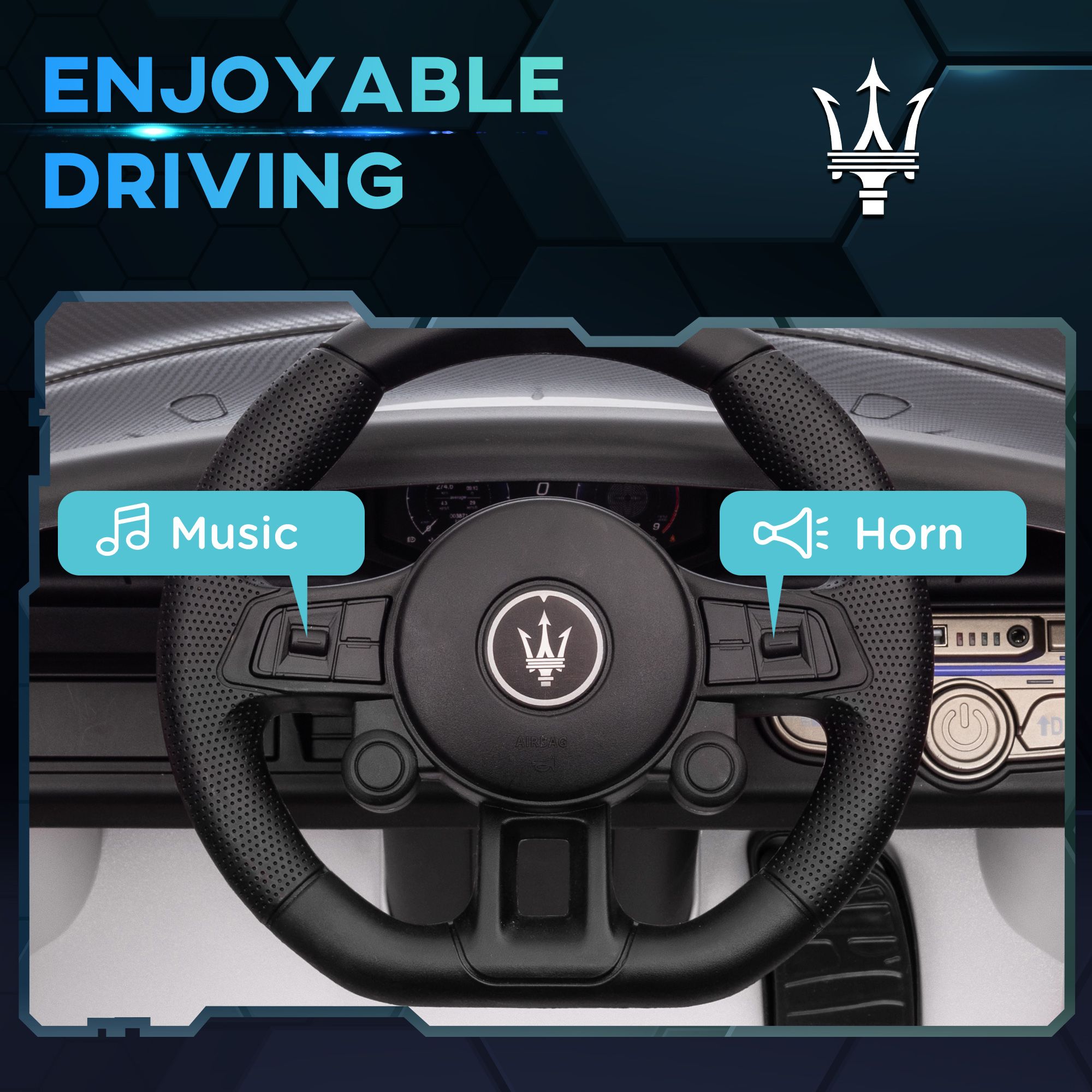 AIVAGO Maserati GT2 Licensed 12V Kids Electric Ride on Car with 4 Suspension, Remote Control Music Horn Lights - White