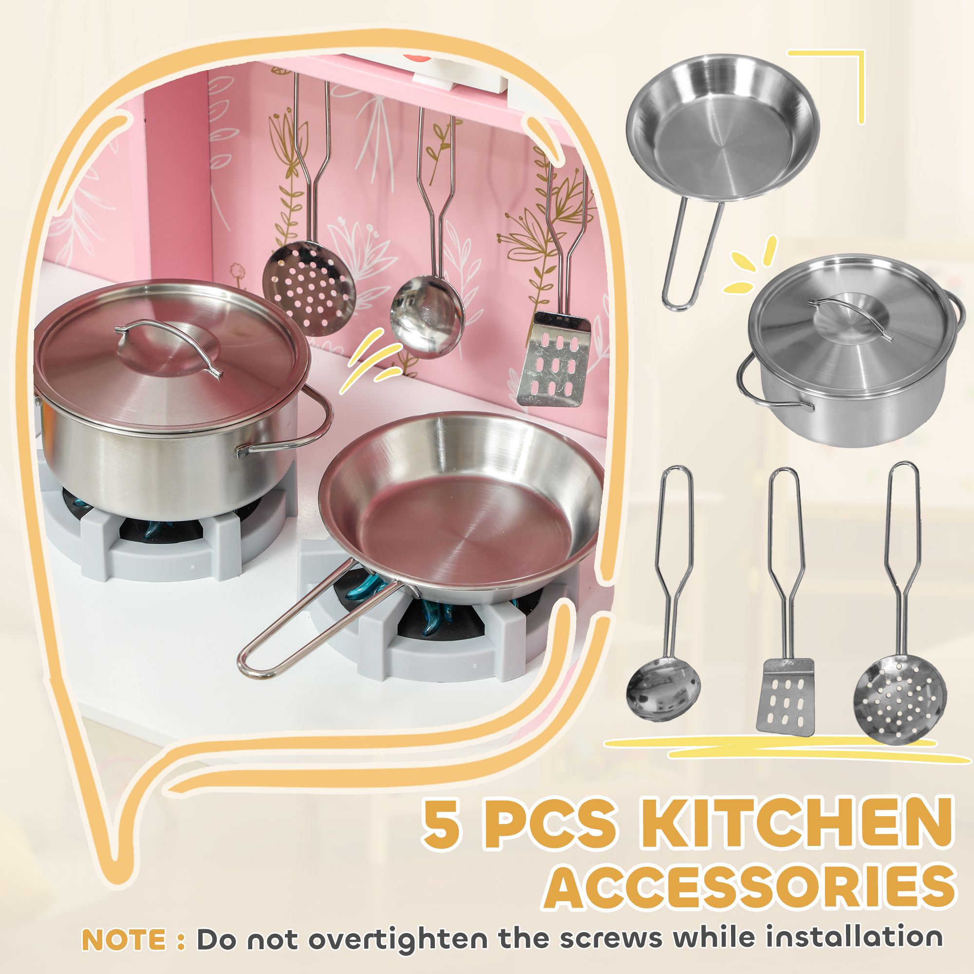 AIVAGO Play Kitchen, Kids Kitchen Set with Lights and Sounds, Double Stoves, Ice Maker, Chalkboard for 3+ Years - Pink