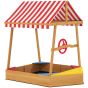 AIVAGO Wooden Kids Sandpit Boat Style with Canopy, 4 Seats, Rudder, Bottom Liner, for Children 3-8 Years, Yellow