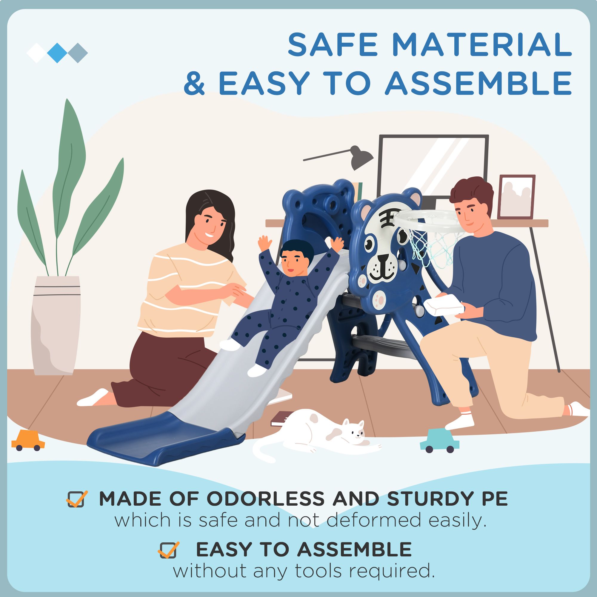 AIYAPLAY 2 in 1 Baby Slide for Indoor Use with Basketball Hoop, Basketball, for Ages 18-36 Months - Blue