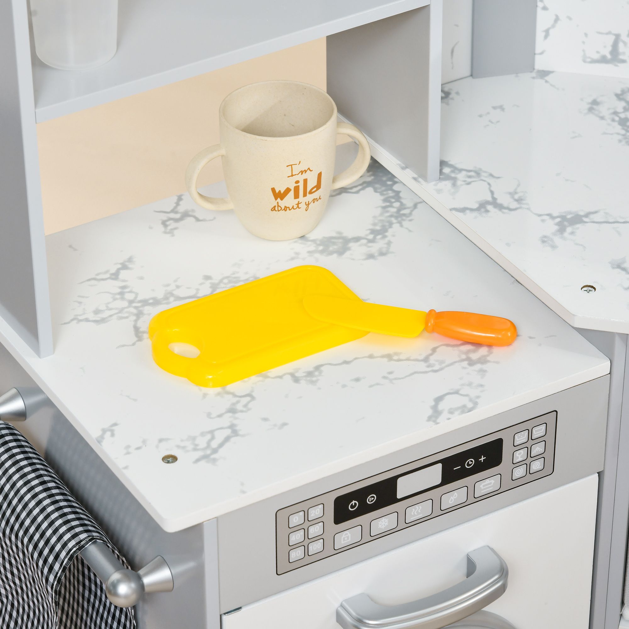 AIYAPLAY Toy Kitchen with Running Water, Lights Sounds, Apron and Chef Hat, Water Dispenser, for 3-6 Years Old - Grey