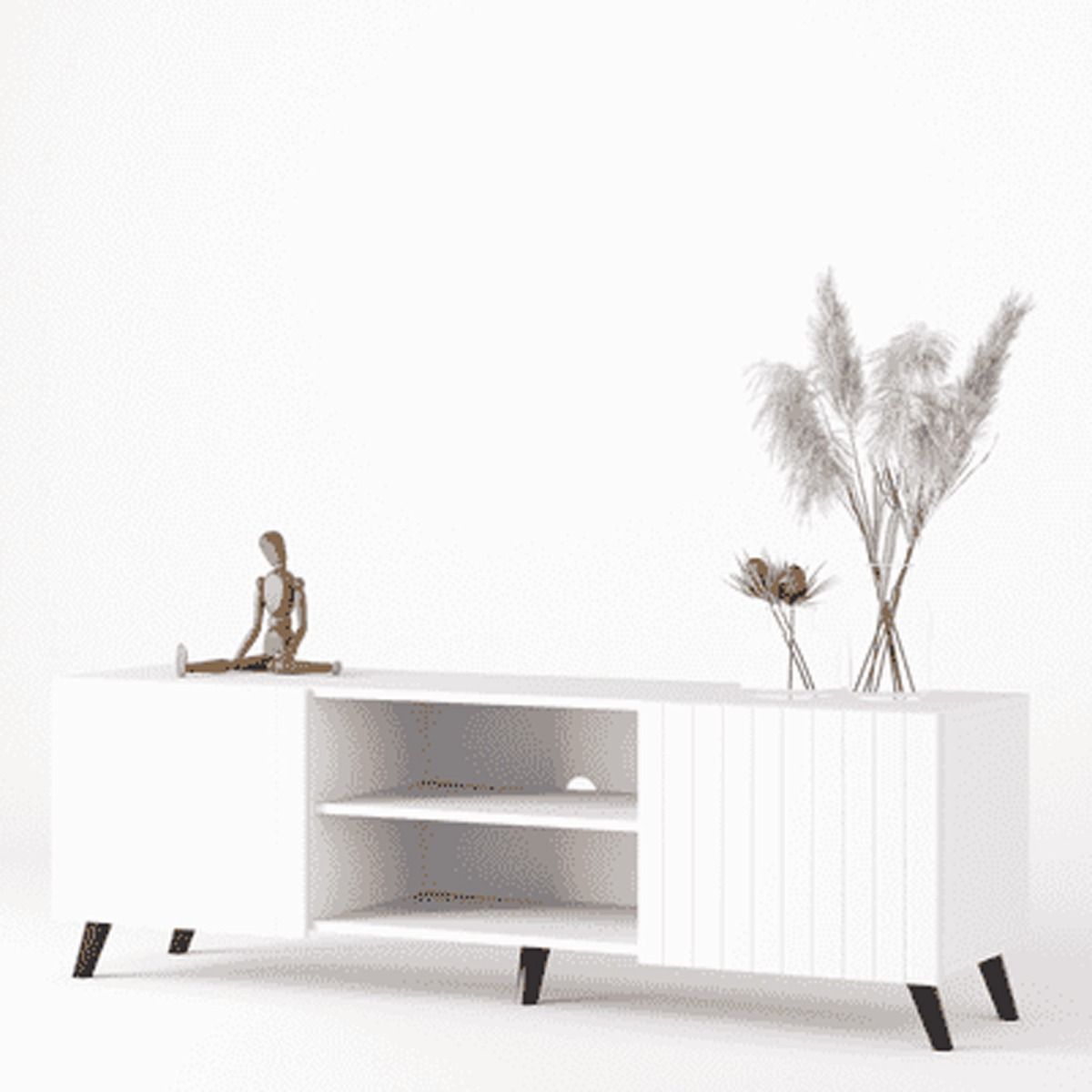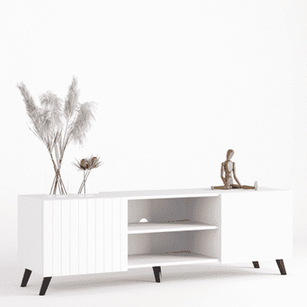 Alan Vertical Grooved Lines Large TV Unit Stand with 2 Doors - Matte White