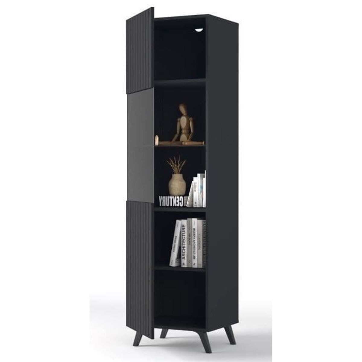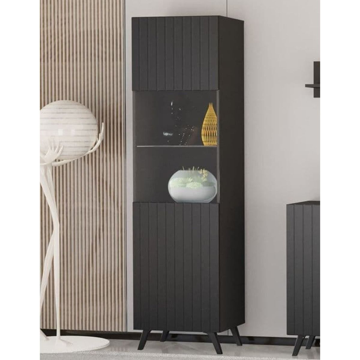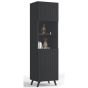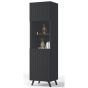 Alan Vertical Grooved Lines Tall Display Cabinet with 1 Glass Door - Matte Black