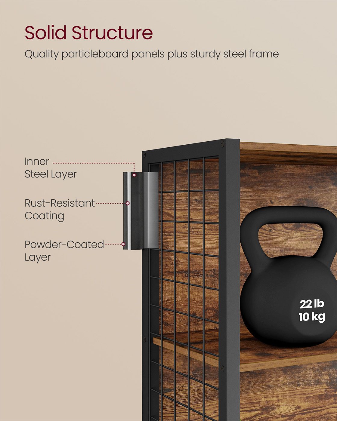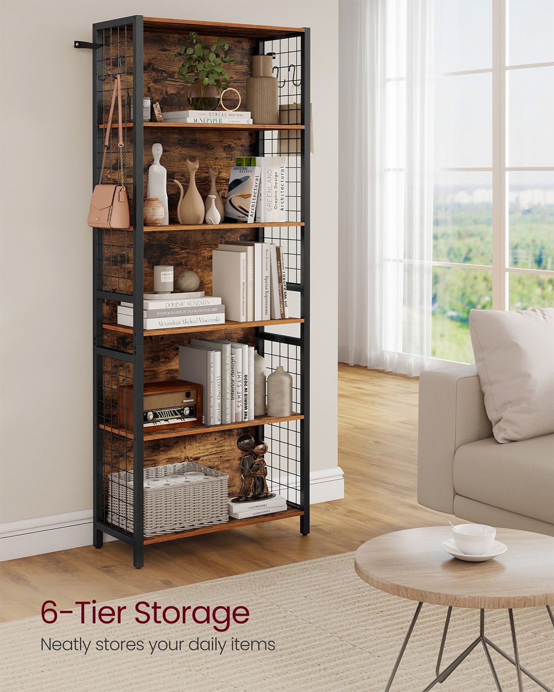 ALDERLY Bookcase with Hooks and Multiple Shelves 60cm - Meduim Oak and Black